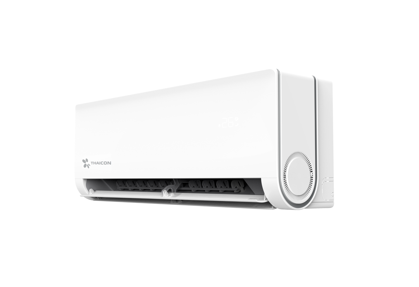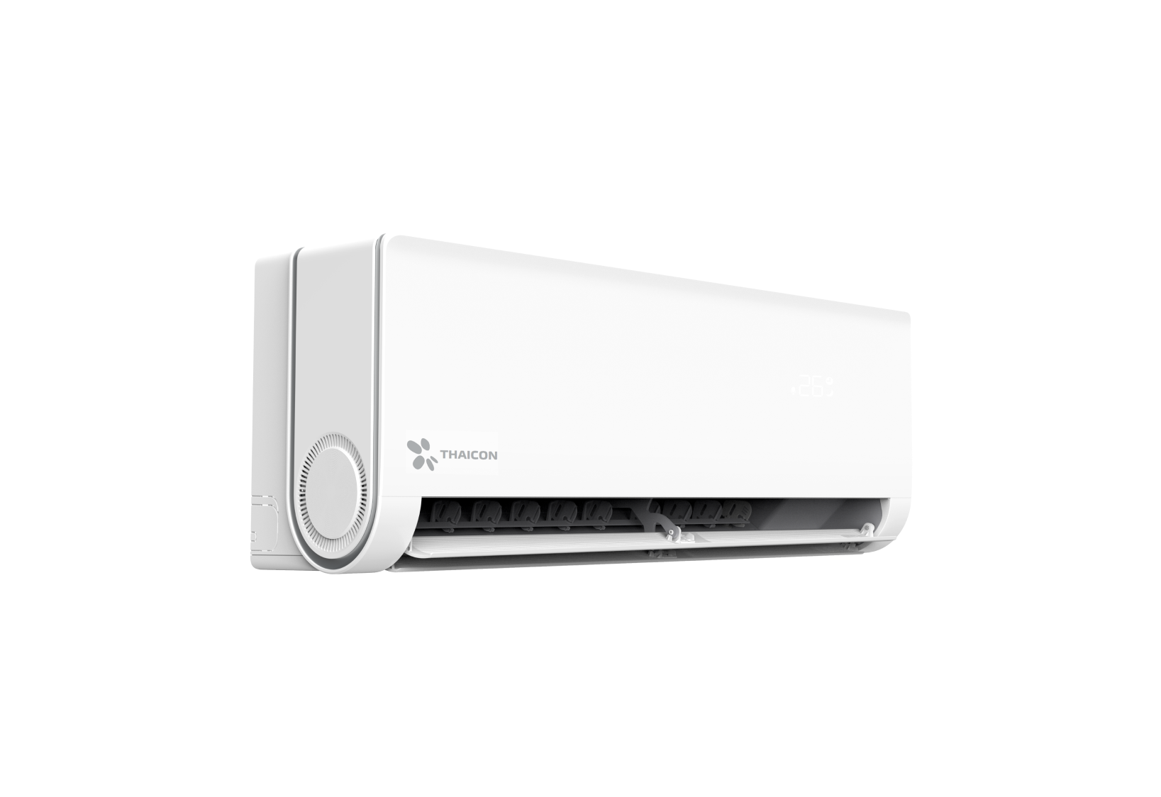 Сдвоенные горизонтальные жалюзи, позволяют направлять поток воздуха вдоль потолка в режиме охлаждения или вниз вдоль стены в режиме обогрева, а перфорированные вертикальные жалюзи рассеивают поток воздуха для максимального комфорта.